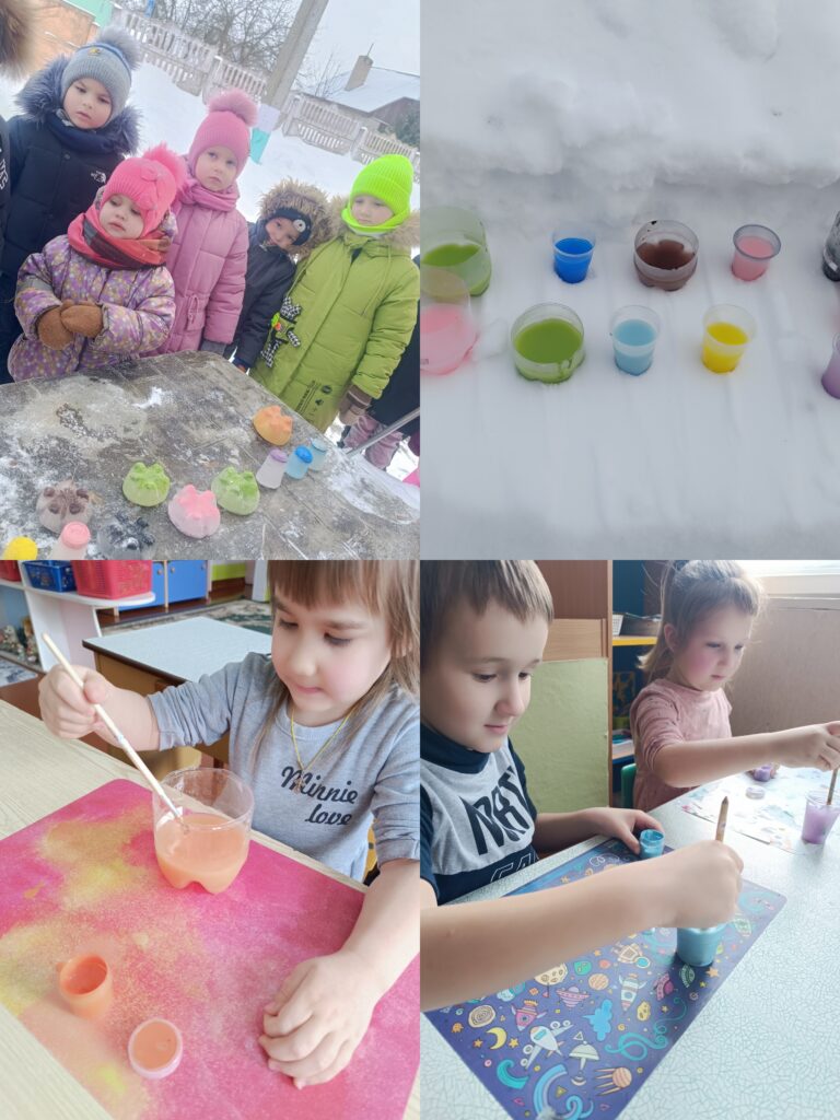 У перыяд канікул выхаванцам дзіцячага сада самы час займацца цікавымі справамі. За акном зіма, таму разам з выхавальнікам Свінцовай В.В. вырашылі пазнаёміцца з уласцівасцямі вады і снегу ў зімовы перыяд. Дабавілі фарбаў. А ў выніку атрымалі прыгожыя ледзяныя цацкі на ёлку. Эксперымент удаўся!
