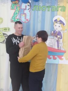 У пярвічнай прафсаюзнай арганізацыі ўстановы стала добрай традыцыяй віншаваць работнікаў са святамі. Сёння, 23 лютага, прымаў віншаванні адзіны мужчына ў калектыве Яўгеній Бучацкі. Старшыня прафсаюзнага камітэта Норанберг А.У. ад імя усіх работнікаў павіншавала Яўгенія і ўручыла падарунак да свята.